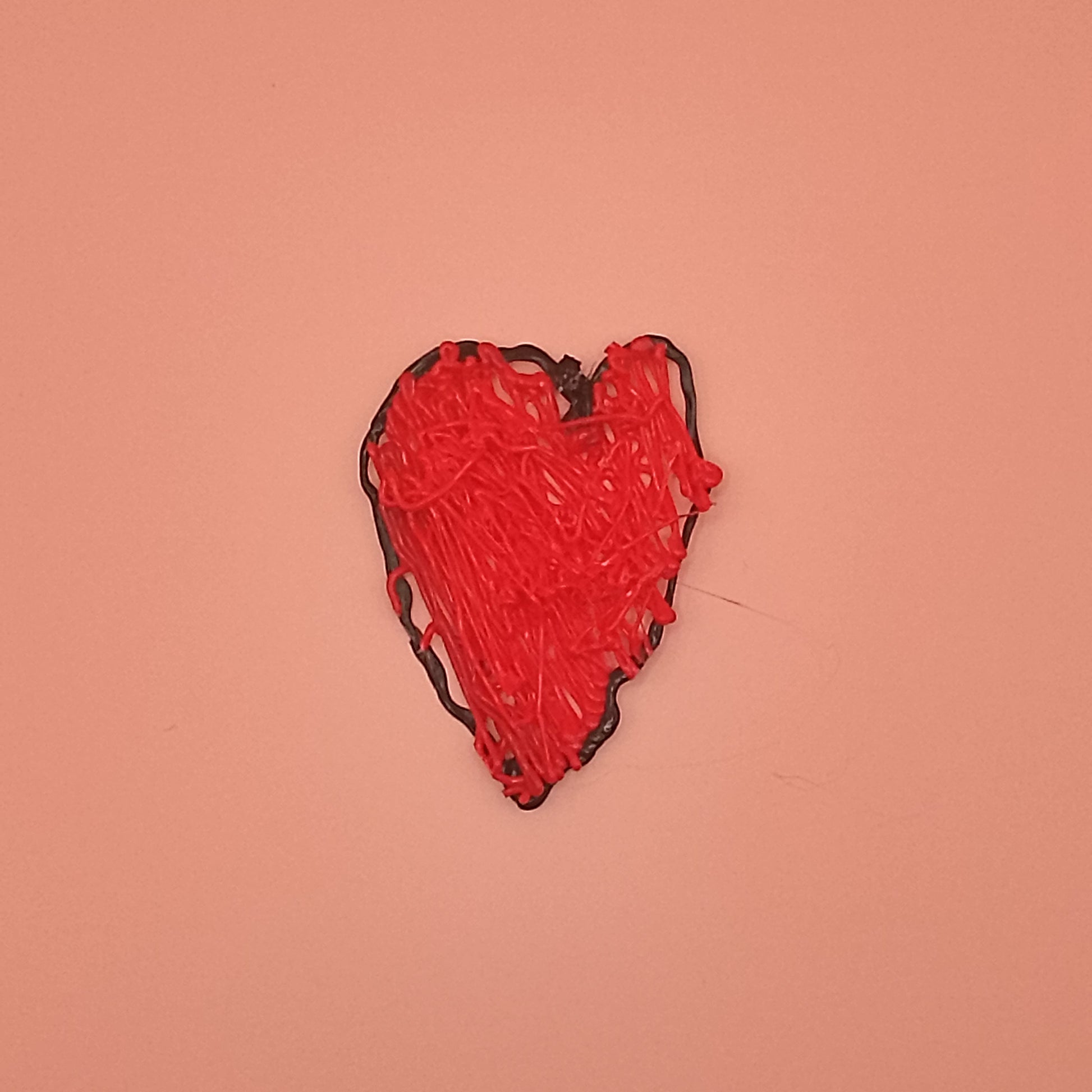 This one-of-a-kind piece is carefully "drawn" layer by layer using a 3D pen in bright red plastic, with a bold black outline for extra pop. The fun, textured design has whimsical squiggles and loops that give it a playful, artistic vibe—like a burst of happiness straight from a young imagination. Lightweight and unique, it's perfect as a pendant (add your own chain or cord), keychain, ornament, or special gift.